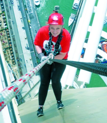 They are fundraising for the Brain Tumour Charity, with the manager and her partner collecting £3,005 from a sponsored abseil.