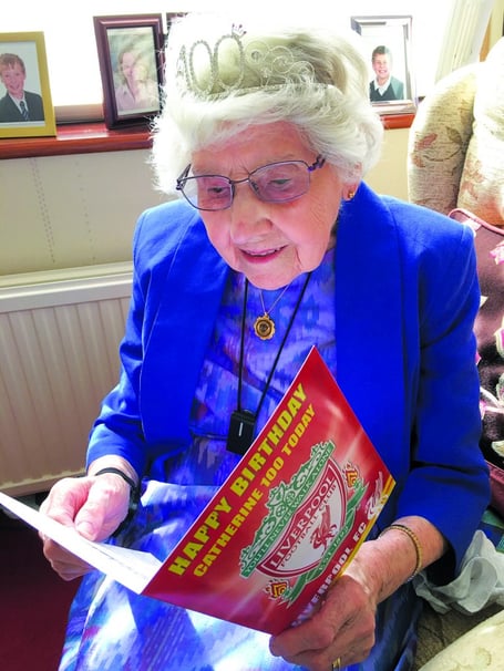A LETTER from the Queen marking her 100th birthday was an honour, but a personal greeting from Liverpool Football Club’s manager was the icing on the cake for Catherine Henderson.
