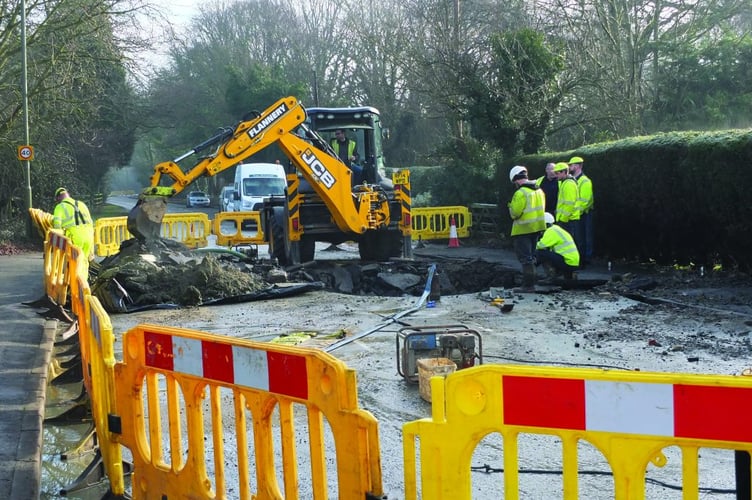 The gushing leak from a watermain trunk, believed to be up to 60 years old, caused the highway to collapse and the road had to be shut to traffic between Horsell Birch and Lockfield Drive.
