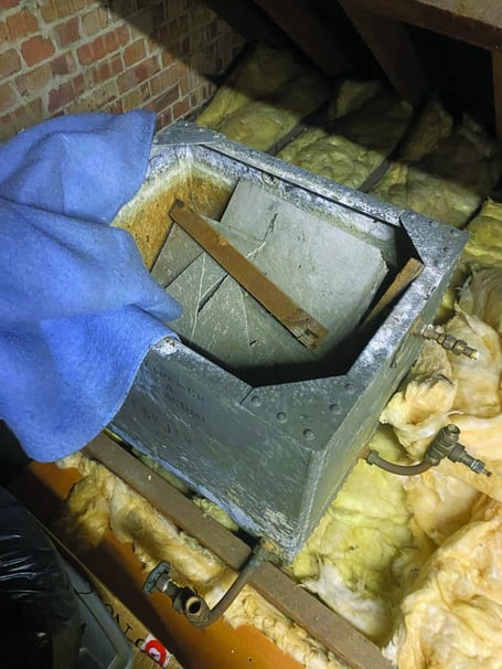 At that time, he was given a report which said there was asbestos in the loft, and he found a small cement-asbestos sheet fixed to the chimney breast. But he has now found that a disused water tank is full of broken asbestos sheeting.