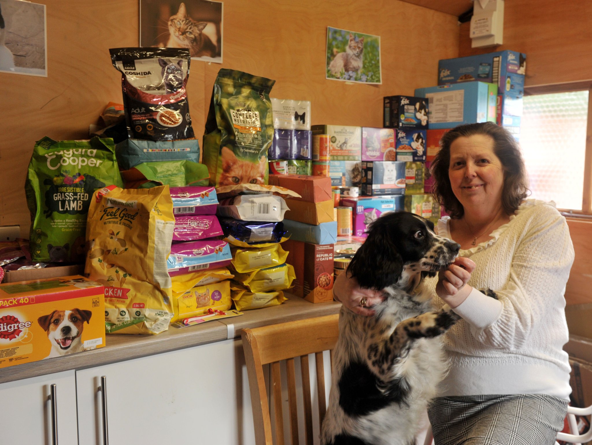 Jane Harding runs a pet foodbank, Fur and Feathers, to distribute donated food to pet owners who are struggling financially, reducing the chance of them having to hand the pet to a rescue centre.