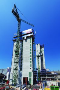 A new skyline for the town is being seen from many miles around, as the first two tower blocks rapidly take shape.