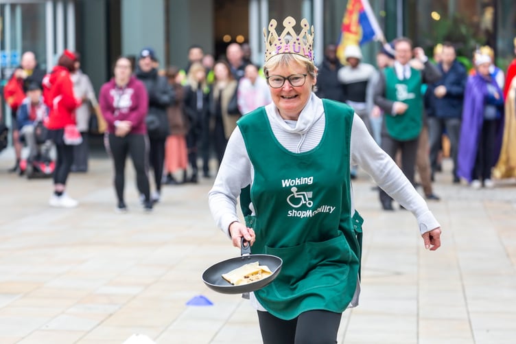 Woking Shopmobility will hold its annual pancake race in Jubilee Square on Tuesday, 4 March in the presence of the Mayor of Woking, Cllr Louise Morales, and MP Will Forster.