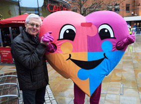 Facepainting and tombola prizes added to the day’s excitement, while bucket shakers were generously supported by shoppers. But the most pumped up individual on the day was the hospices’ newest recruit, Hope the heart-shaped mascot.