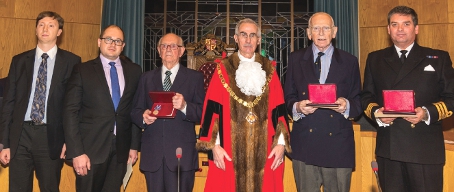Woking men Douglas Potts, Reginald Guy and Edward Tann were distinguished guests at the reception held in the Civic Chambers, where they were each presented with the prestigious Ushakov Medal.