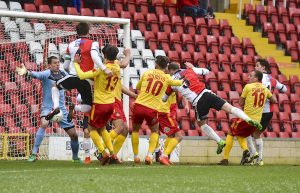 Josh Staunton headed The Cards ahead in the 12th minute, before goals either side of half-time from Paul Rutherford and Marcus Kelly completed the turnaround for the visitors.