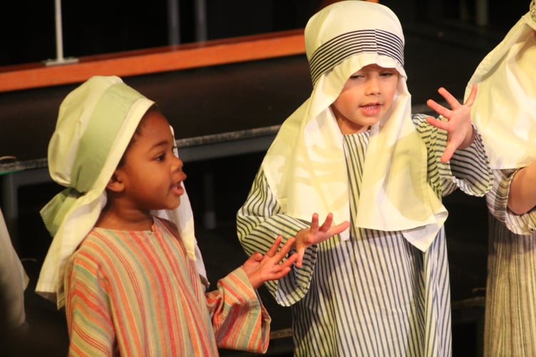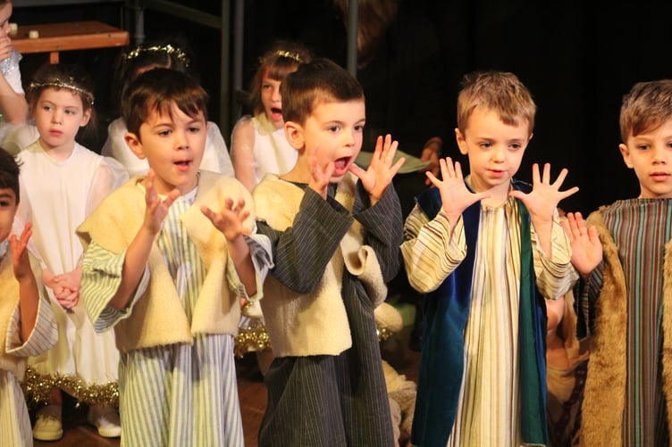 Nursery and Reception children told the story of Shepherd Little, while the Year 1 and 2 children staged Boogie Woogie Nativity.