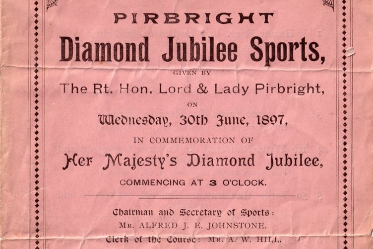 A sports day was held on Wednesday 30 June 1897. A surviving four-page programme provides a fascinating glimpse into the day’s events, which were “given”, and presumably funded, by Lord and Lady Pirbright.