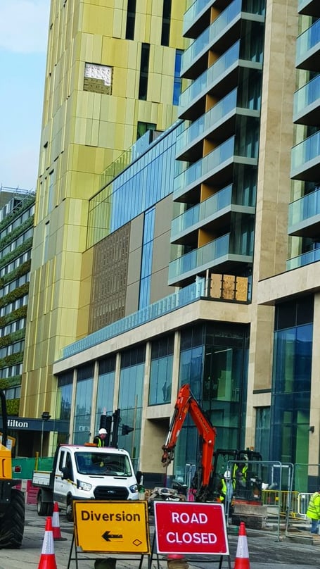 When asked by the News & Mail this week about the “temporary” nature of the additional fixings, specifically whether they would have to be revisited, Cllr Azad said: “When the panels fell off the Hilton Hotel building, the council’s contractor prioritised safety by closing the road and undertaking strengthening work based on the immediate examination of the fallen panels and their fixings, pending a further detailed report.