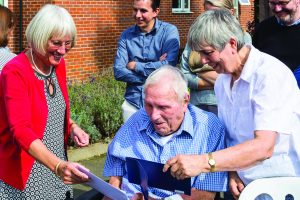 On Sunday, he celebrated his 100th birthday, surrounded by family members and neighbours at his home in Barnes Wallis Court, Byfleet.