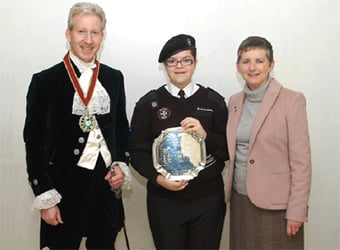 In a special award ceremony held at St John the Evangelist Church in Cranleigh, Mary was presented with her comme- morative plate by The High Sheriff of Surrey, Peter Lee; and Denise Clarke, mother of Alex Clarke – a former Cadet himself, in whose memory the award was created.