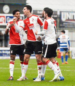This pair of ‘footballing’ sides were showing themselves capable of coping admirably with the gusty conditions – City goalkeeper Laurie Walker adapting his kicking game to keep the ball on the Kingfield turf, while for the hosts the in-form Bruno Andrade started brightly with an early shot on Walker’s goal.