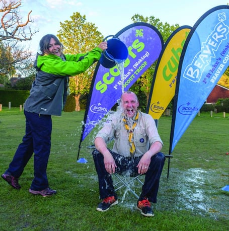 The achievement of reaching the first £1,000 was marked by drenching Beaver leader Peter Lake in ice-cold water.