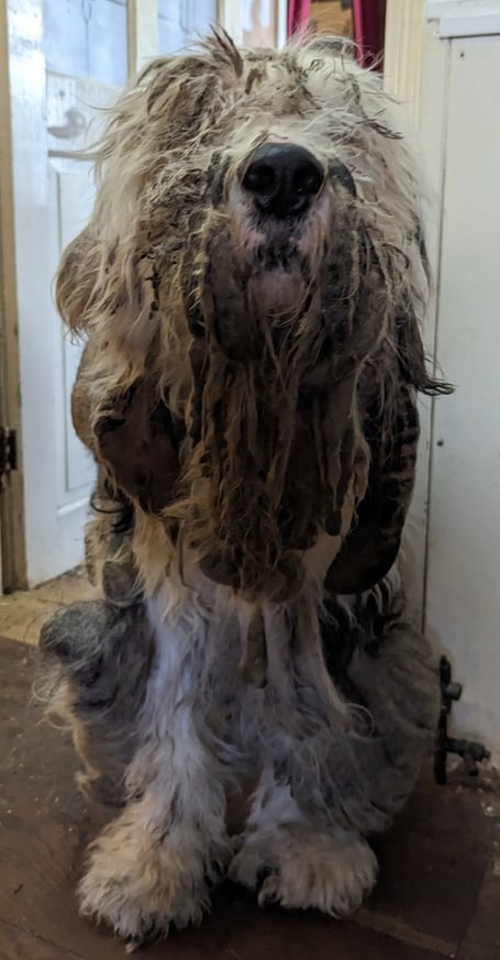 AN old English sheepdog has had an amazing transformation and looks like a completely different dog after having 5kg (11lb) of severely matted fur removed.