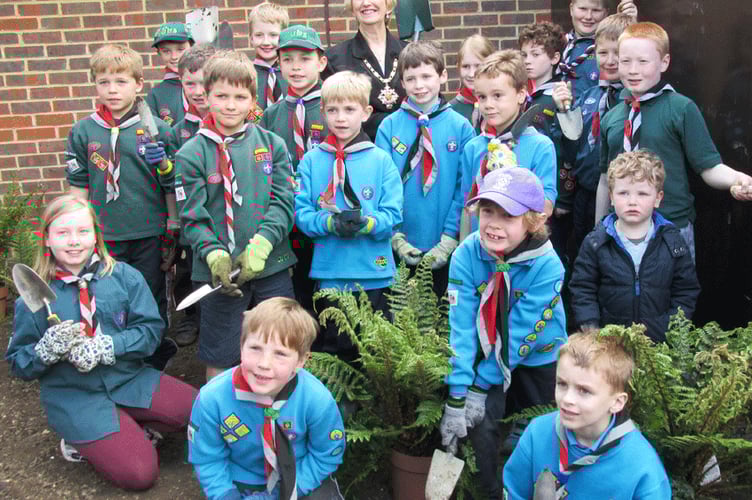 Woking Mayor Anne Roberts got her hands dirty alongside 1st Knaphill Cub, Beaver and Scout Group on Thursday as part of a project to create a Knaphill-based community garden for dementia sufferers.