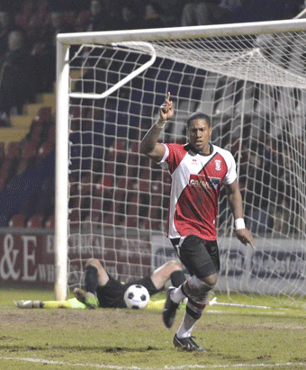 A Woking fan was believed to have thrown a brick through a window and into the room where Mansfield were celebrating a smash and grab victory over the Cards.