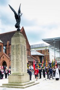 Veteran Eric Rice was drafted in to read the Prayer of the Armed Forces, while standards carried by representatives of the Royal Airforce, Army and Navy were all lowered in a mark of respect to those who have fallen serving their country in combat.