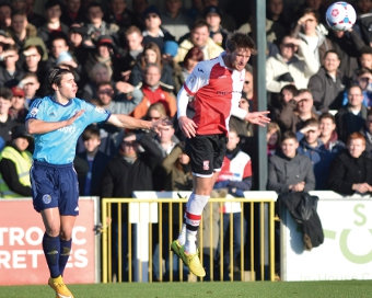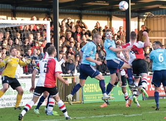 The battling trio embodied the visitors’ up and at ’em approach to the game, playing at an intensity which the home side just couldn’t match on the day. The identity of the opening scorer was open to some debate after striker Dan Holman stooped to attack McCollin’s cross from the left.